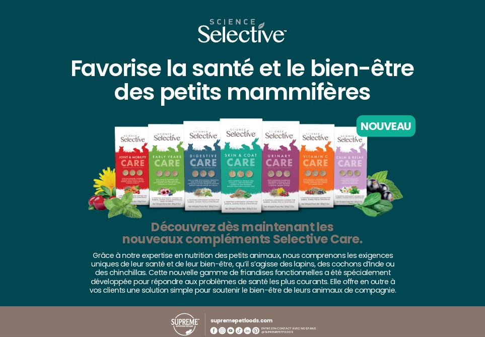 Cette nouvelle gamme de friandises fonctionnelles a été développée pour répondre aux problèmes de santé les plus courants offrant ainsi une solution simple pour améliorer le bien-être de l'animal. (Lapin - Cochon d'Inde - Chinchilla)
