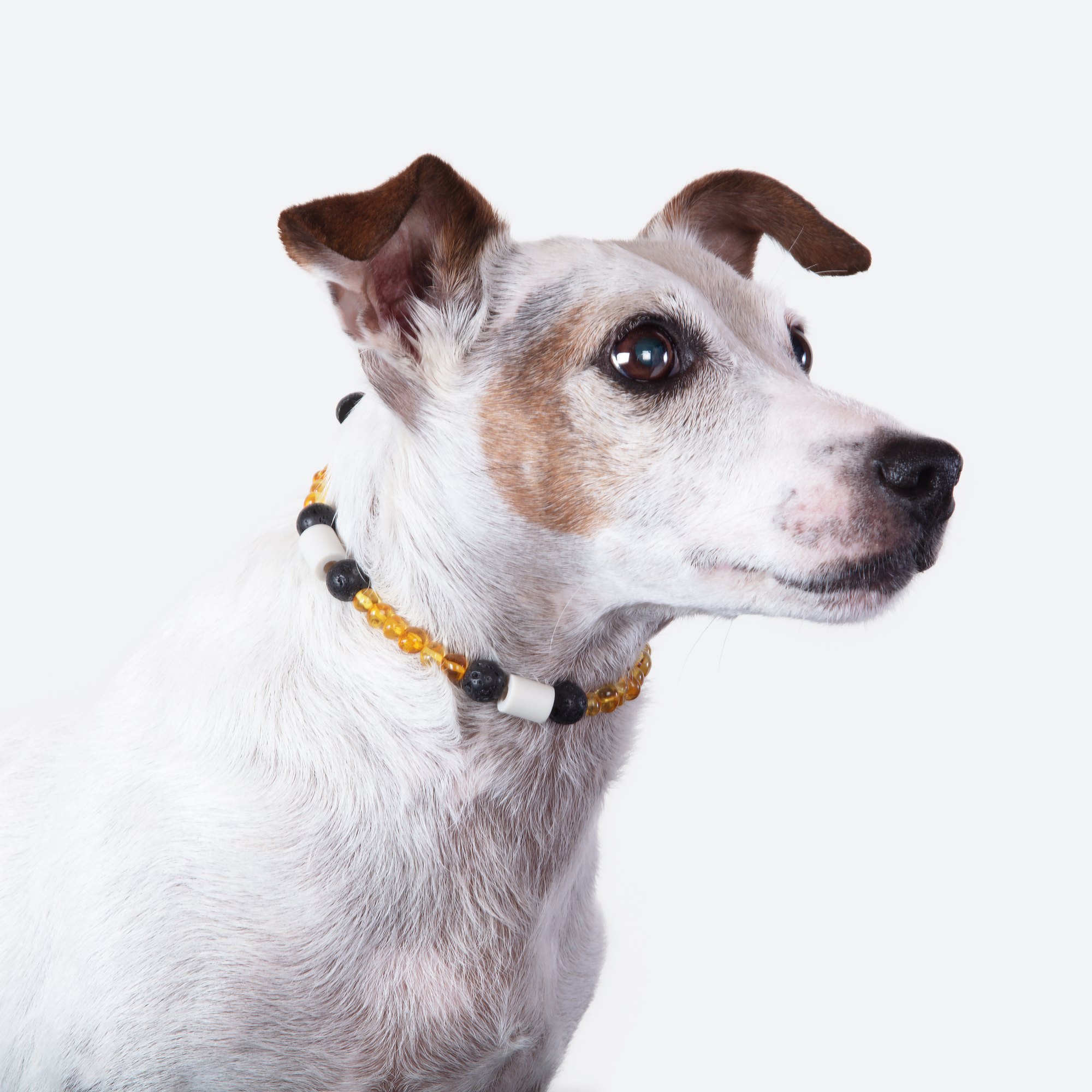 Collier anti-tiques naturel en ambre, céramique EM et pierre de lave